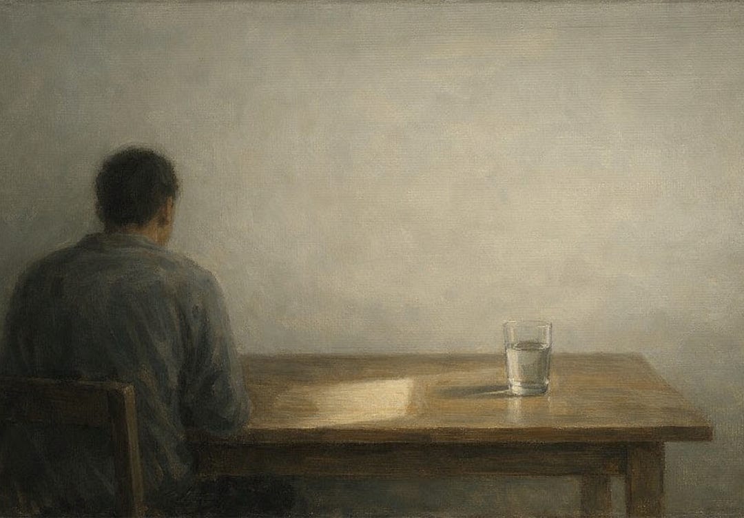 ماء فقط، لا قهوة، لا كتاب مفتوح، لا شاشة.